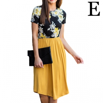 Fashion Printed Spliced Short Sleeve Round Neck Dress