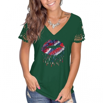 Fashion Red-lip Printed Tassel T-shirt