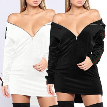 Fashion Ribbon Spliced Long Sleeve High-low Hem Hooded Dress