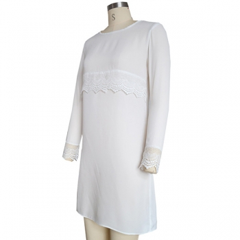 Fashion Round Neck Lace Spliced Long Sleeve Dress