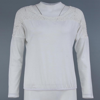 Fashion Round Neck Lace-Trim Spliced Long Sleeve Top