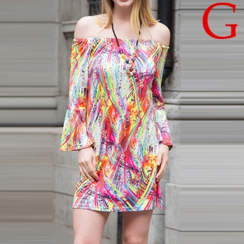 Fashion Sexy Printed Off-shoulder Flare Sleeve Dress
