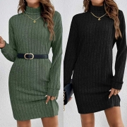 Fashion Short Sleeve POLO Collar Single-breasted Slim Fit Denim Dress