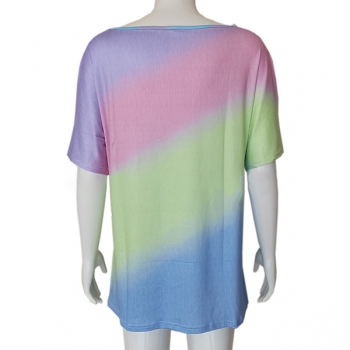 Fashion Short Sleeve Round Neck Color Gradient T-shirt