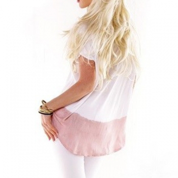 Fashion Short Sleeve Round Neck Contrast Color Printed T-shirt