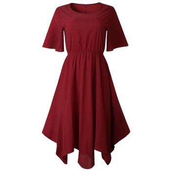 Fashion Short Sleeve Round Neck Irregular Hem Solid Color Dress