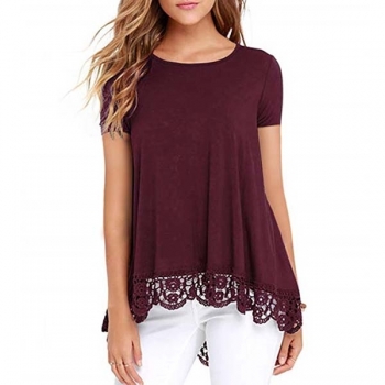 Fashion Short Sleeve Round Neck Lace Spliced Hem T-shirt