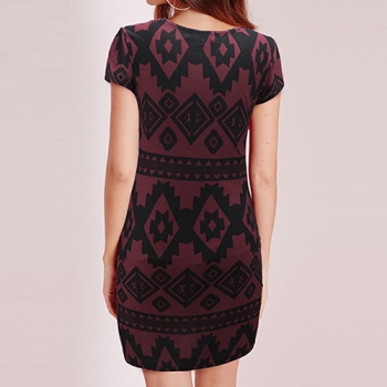 Fashion Short Sleeve Round Neck Slim Fit Printed Dress