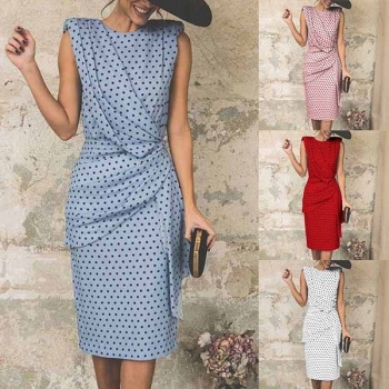 Fashion Sleeveless Round Neck Dots Printed Slim Fit Dress