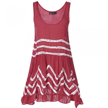 Fashion Sleeveless Round Neck Lace Spliced Flouncing Hem Dress