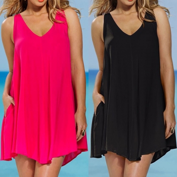 Fashion Sleeveless V-neck Solid Color Loose Chiffon Dress