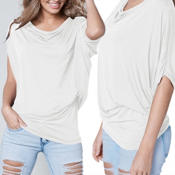 Fashion Solid Color Dolman Sleeve Cowl Neck T-shirt
