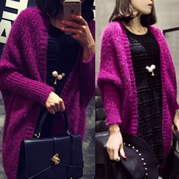Fashion Solid Color Dolman Sleeve Knit Cardigan