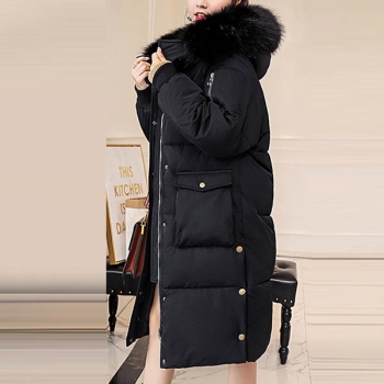 Fashion Solid Color Faux Fur Spliced Hooded Big Pocket Padded Coat