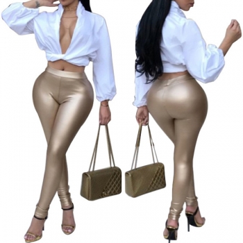 Fashion Solid Color High Waist Slim Fit PU Leather Pants