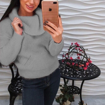 Fashion Solid Color Long Sleeve Cowl Neck Sweater