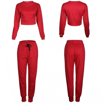 Fashion Solid Color Long Sleeve Crop Top + Pants Sports Suit