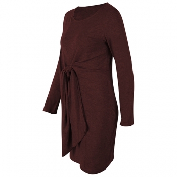 Fashion Solid Color Long Sleeve Front-knotted Slim Fit Dress