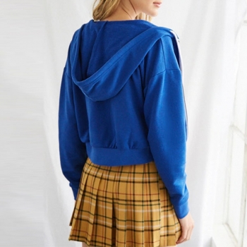 Fashion Solid Color Long Sleeve Hooded Short-style Sweatshirt