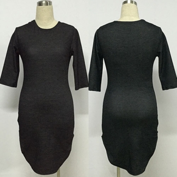 Fashion Solid Color Long Sleeve Irregular Hem Slim Fit Dress