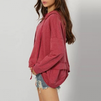 Fashion Solid Color Long Sleeve Irregullar Hem Loose Hoodie