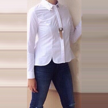 Fashion Solid Color Long Sleeve POLO Collar Dovetail Hem Shirt