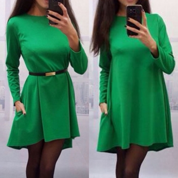 Fashion Solid Color Long Sleeve Round Neck Irregular Hem Dress