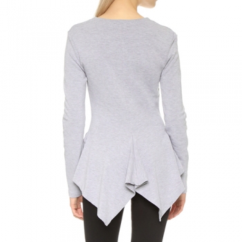 Fashion Solid Color Long Sleeve Round Neck Irregular Hem T-shirt
