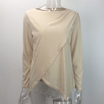 Fashion Solid Color Long Sleeve Round Neck Irregular Hem T-shirt