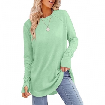 Fashion Solid Color Long Sleeve Round Neck Loose T-shirt