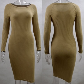 Fashion Solid Color Long Sleeve Round Neck Slim Fit Dress
