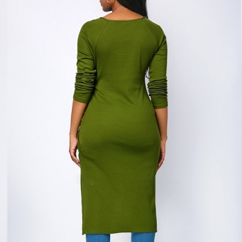 Fashion Solid Color Long Sleeve Side-drawstring Top