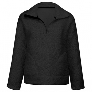 Fashion Solid Color Long Sleeve Stand Collar Plush Sweatshirt