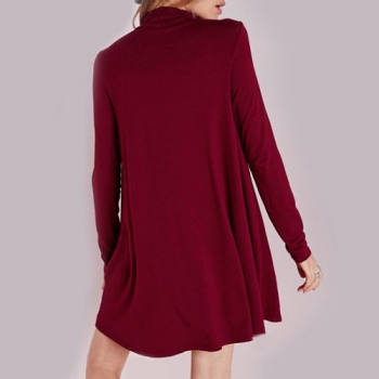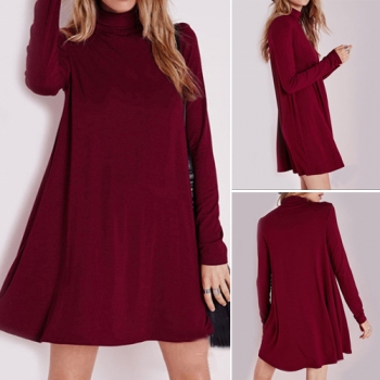 Fashion Solid Color Long Sleeve Turtleneck Loose Dress
