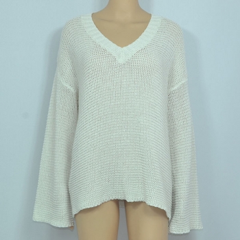 Fashion Solid Color Long Sleeve V-neck Loose Sweater