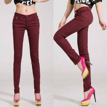 Fashion Solid Color Middle-waist Slim Fit Pencil Pants