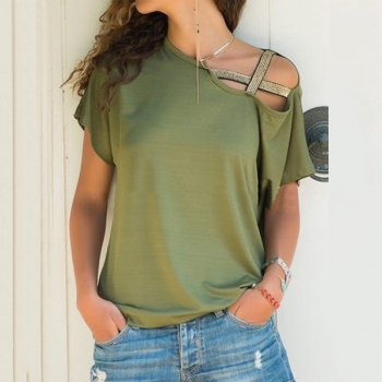 Fashion Solid Color Oblique Shoulder Short Sleeve Shirt