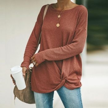 Fashion Solid Color Round-neck Long Sleeve Knitted Top