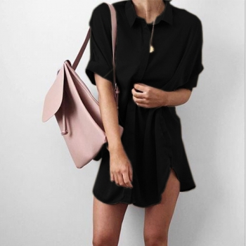 Fashion Solid Color Short Sleeve POLO Collar Loose Shirt Dress