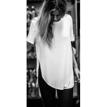 Fashion Solid Color Short Sleeve Round Neck High-low Hem T-shirt