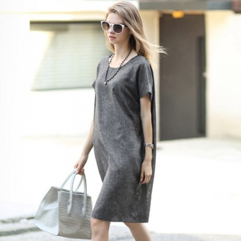Fashion Solid Color Short Sleeve Round Neck Loose Dress
