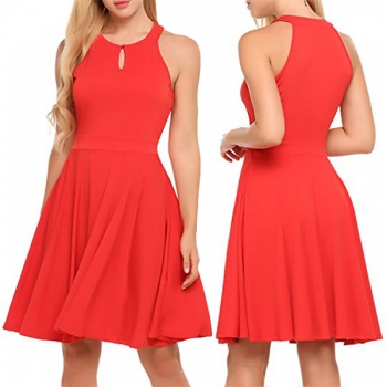 Fashion Solid Color Sleeveless Round Neck A-line Dress