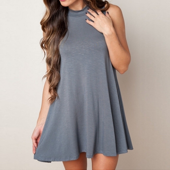 Fashion Solid Color Sleeveless Round Neck Loose Dress
