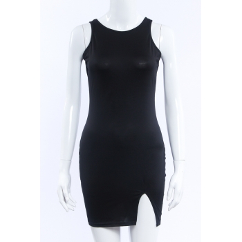 Fashion Solid Color Sleeveless Round Neck Slit Hem Slim Fit Dress