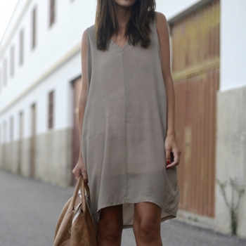 Fashion Solid Color Sleeveless V-neck Loose Dress