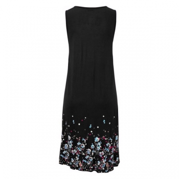Fashion Style Round Neck Sleeveless Flowers Printed Dress