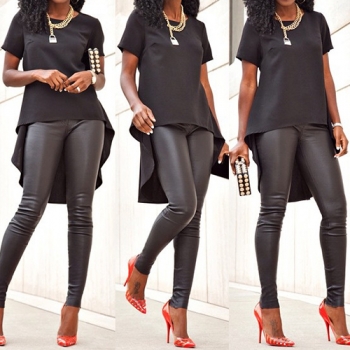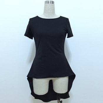 Fashion Style Round Neckline Short Sleeves Dovetail Hem T-Shirt