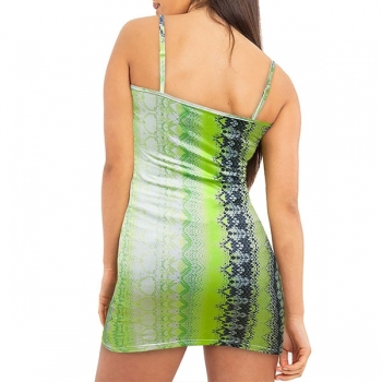 Sexy Backless Deep V-neck Serpentine Printed Sling Dress