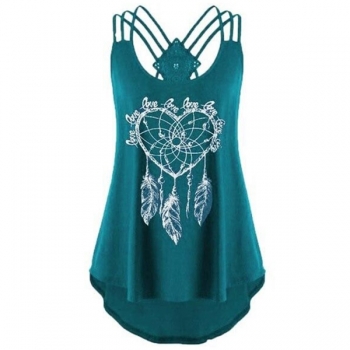 Sexy Backless HIgh-low Hem Printed Sling Top