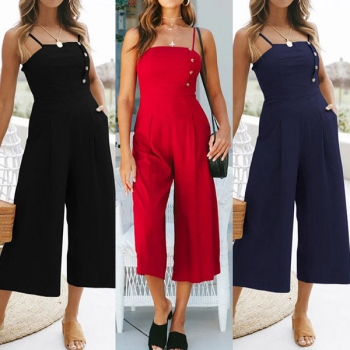 Sexy Backless High Waist Solid Color Sling Jumpsuit